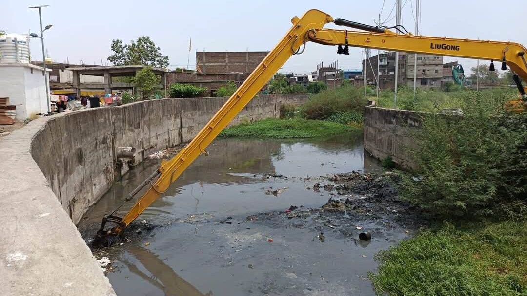 बड़ी पोकलेन मशीन द्वारा की जा रही नगर के बड़े नालो की सफ़ाई तथा गहरीकरण कार्य…