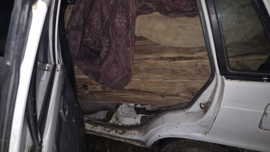 इसी दौरान रात्रि के लगभग 9.30 PM पर वाहन आने की सूचना प्राप्त हुई, सूचना मिलते ही वन अमला तत्काल अलर्ट होकर उक्त वाहन को चेकिंग हेतु रोकने का प्रयास किया गया, वन अमले को देखते ही वाहन चालक वाहन को तेज रफ्तार भगाने लगा। जिसका पीछा ग्राम दुर्गा नायक से होलीटेक के पास तक किया गया, वन विभाग से घिरता देखकर मारुति 800 चालक सागौन सिल्लिया सहित वाहन को छोड़कर अंधेरा का फायदा उठाकर भागने में सफल रहा।