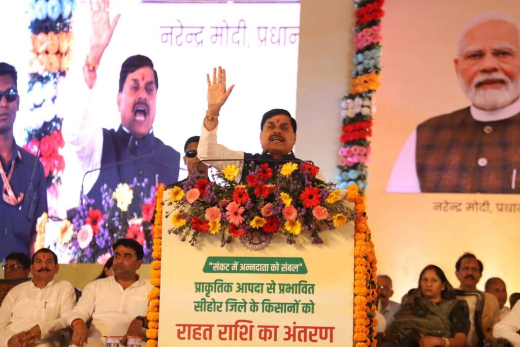 मुख्यमंत्री डॉ यादव सीहोर जिले की आठ तहसीलों में पीला मोजेक एवं कीट व्याधि से प्रभावित 1,87,140 किसानों के खाते में 101 करोड़ 70 लाख 90 हजार 999 रूपये की अंतरित की। इसी प्रकार उन्होंने अतिवृष्टि से प्रभावित 02 तहसीलो के 18, 837 सोयाबीन उत्पादक किसानों के खाते में 16 करोड़ 70 लाख 36 हजार रूपये की राहत राशि अंतरित की। उल्लेखनीय है कि भैरूंदा एवं बुधनी के किसानों की फसल अतिवृष्टि से तथा आष्टा, जावर, रेहटी, इछावर, श्यामपुर, दोराहा, सीहोर ग्रामीण तथा सीहोर नगर के किसानों की फसल पीला मोजक एवं कीट व्याधी से खराब हुई थी।