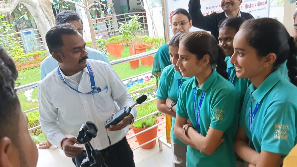 भैरूंदा – दिनांक 30/10/2025 गुरूवार को भारती विद्या मंदिर के विद्यार्थियों ने “क्षेत्रीय प्राकृतिक विज्ञान संग्रहालय, भोपाल” मैं आयोजित प्रदूषण की निगरानी करने का प्रदर्शन के लिए शैक्षणिक भ्रमण किया, जिसमें विद्यालय के कक्षा 10, 11 व 12 के 20 छात्र-छात्राओं ने भाग लिया, प्रदर्शनी के दौरान विद्यार्थियों ने ध्वनि प्रदूषण, वायु प्रदूषण, जल प्रदूषण, वायु गुणवत्ता की प्रदर्शनी को देखा जाना व समझा। कैसे सिंगल यूस प्लास्टिक प्रकृति के लिए घातक होता है, यह भी जाना। प्रदर्शनी के दौरान अलग-अलग विद्यालय के केवल 100 विद्यार्थियों का ही चयन किया गया।