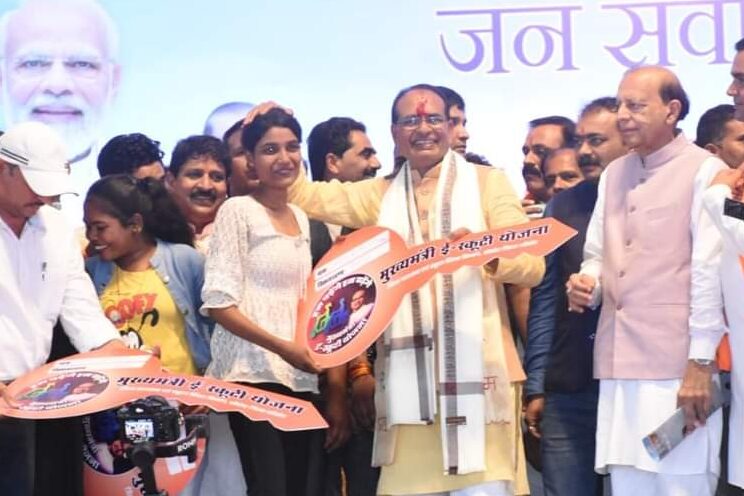 मुख्यमंत्री मामा से स्कूटी की चाबी पाकर कर प्रसन्न हुई छात्राएं-
