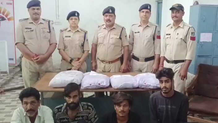 वही भैरूंदा थाना प्रभारी गिरीश दुबे ने बताया कि ग्राम गुलरपुरा से अवैध रूप से मादक पदार्थ बेचने खरीदने वाले रामनिवास मीणा के घर पर दबिश दी गई, जहां घर के अंदर बैठे चार व्यक्ति पुलिस को देखकर भागने का प्रयास किया, जिनको पुलिस बल की मदद से घेराबंदी करके पकडा लिया, घर की तलाशी लेने पर 03 पालिथीन के पैकेट में 09 किलो गाँजा बरामद किया गया, जिसका बाजार मूल्य डेढ़ लाख रुपए है व आरोपियों के कब्जे से एक हुंडई इओन कार क्रमांक MP05-CA-2649 को भी जब्त किया गया।